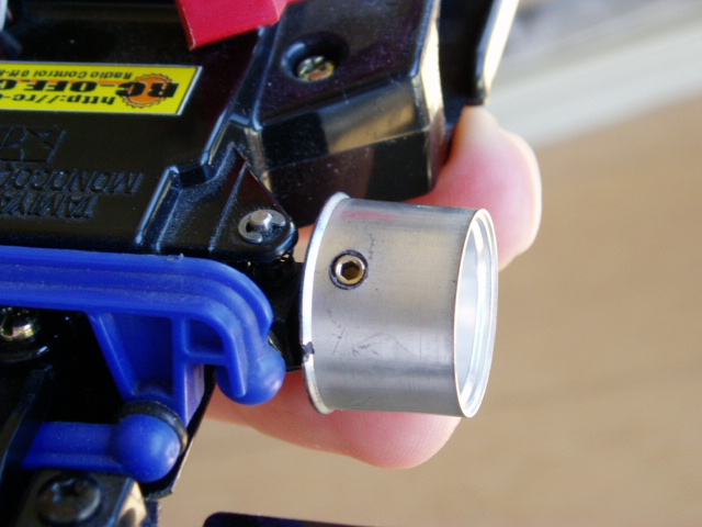 このとき、①で作成した「フロントハブ」がきっちり納まる内径まで削ります。